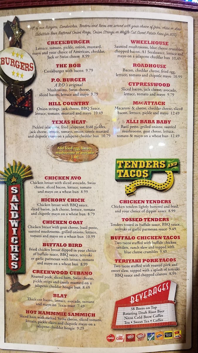 Creekwood Grill, located at 12710 Telge Rd in Cypress, TX, is a charming eatery that combines great food with a lively atmosphere. Known as a local treasure, this family-friendly grill offers delicious options like the flavorful chicken avocado sandwich and a variety of healthy dishes. Guests can enjoy refreshing beverages, including sweet tea and root beer, while soaking in the vibrant ambiance filled with local music talent. With a spacious playground for kids and a welcoming outdoor setting for dogs, Creekwood Grill is perfect for families seeking a delightful dining experience. Come for the food; stay for the fun!